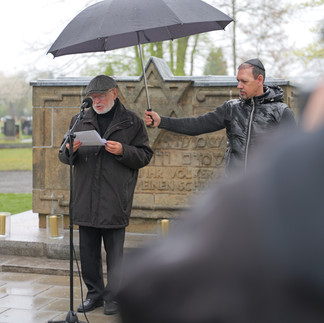 Leipzigs Kulturbürgermeisterin Skadi Jennicke erinnerte an einzelne jüdische Schicksale aus der Stadt, zum Beispiel an den Musikwissenschaftler Josef Damanski, ermordet 1942 in Theresienstadt, und Babette Sbar, Wirtin der „Guten Quelle“, deportiert und ermordet ebenfalls 1942 in Riga. In Leipzig sind mittlerweile 850 Stolpersteine an 300 Adressen NS-Opfern gewidmet. Der Beauftragte des sächsischen Staatsregierung für jüdisches Leben, Thomas Feist, rief zur Solidarität mit Israel auf und forderte Widerspruch gegen Judenhass. Im Anschluss an die Gedenkveranstaltung gab es die Möglichkeit, an einer vom Historiker Steffen Held angebotenen Führung durch den Friedhof teilzunehmen.